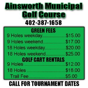 Ainsworth women’s league golf Wednesday changed its format to a team scramble, and the low round belonged to the team of Brenda Konkoleski, Ashley Martin and Rachel Schumacher with a 3-over par round of 39. The women’s league will play in a scramble format for the rest of the season.